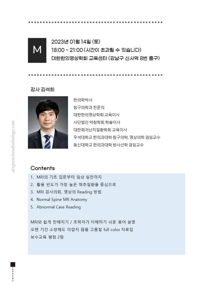 영상의학 입문을 위한 Basic Spine MRI [ 2023.01.14 ]