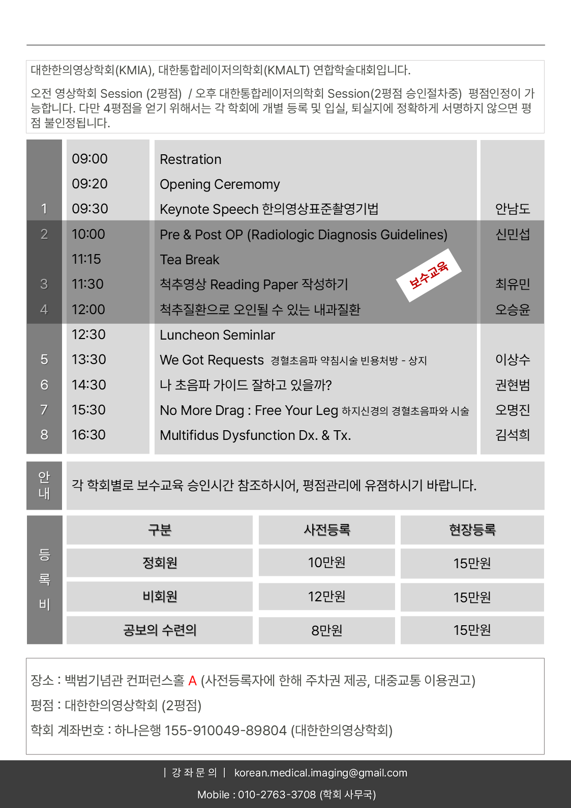 | [대한한의영상학회] 2024 Annual Conference 안내 (0) | 2024.11.26 |