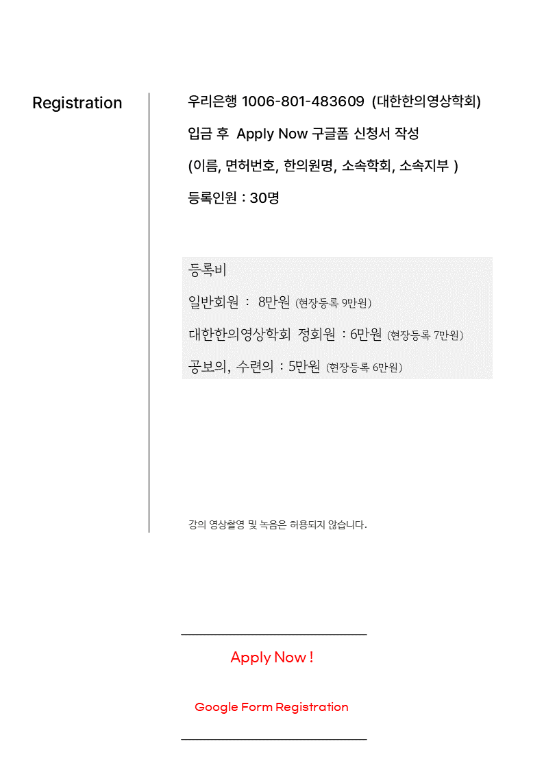 | 2025 근골격계 약침의학 + 근골격계 MRI [ Lecture Series 마감] (2) | 2024.12.13 |