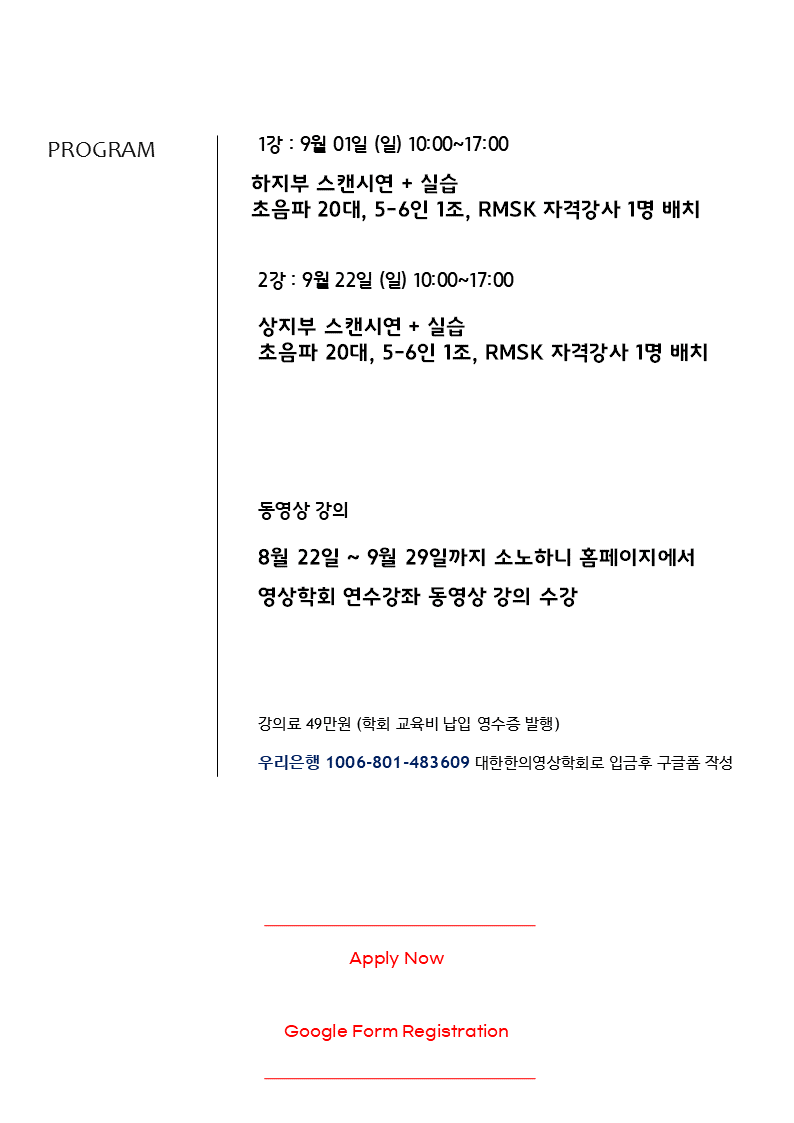 | MSK Ultrasonography Study and Training Course / 2020 제7기 (0) | 2020.02.04 |