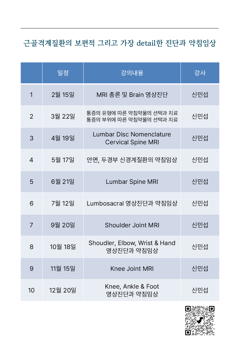 2025 근골격계 약침의학 + 근골격계 MRI [ Lecture Series 마감]