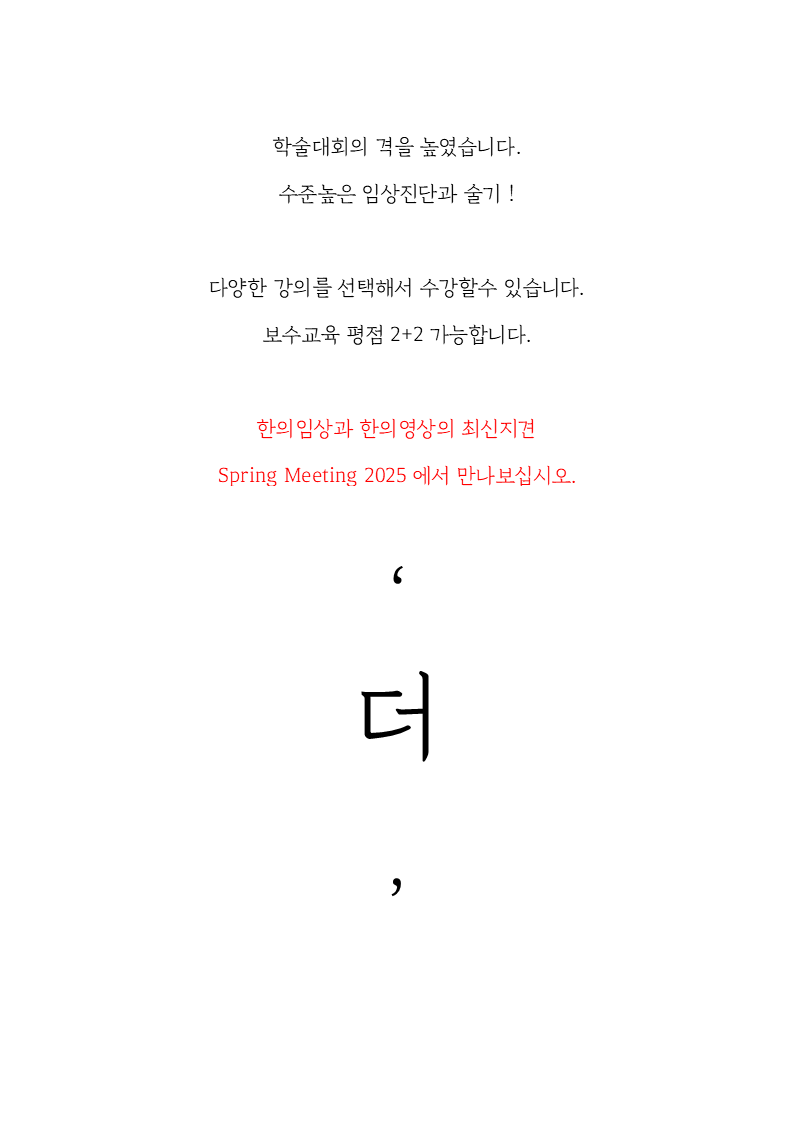 | Spring Meeting 2026 [대한한의영상학회, 대한희귀난치질환학회] 세텍. 26.04.05 (0) | 2026.02.25 |